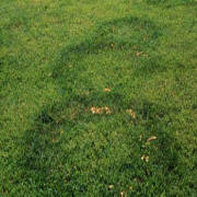dark green and fast-growing turf. They may also appear as rings of slow-growing